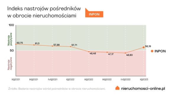 I kwartał 2023 r. okazał się korzystny dla rynku nieruchomości – potwierdza to wynik indeksu nastrojów pośredników, który wzrósł do 56 punktów. To najwyższy wynik od I kwartału 2022 r. – wynika z badania przeprowadzonego przez portal Nieruchomosci-online.pl.