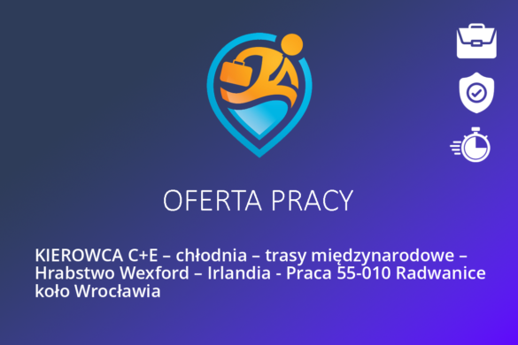 KIEROWCA C+E – chłodnia – trasy międzynarodowe – Hrabstwo Wexford – Irlandia