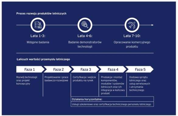 „Niemniej przejścia pomiędzy poszczególnymi etapami zazwyczaj nie zachodzą błyskawicznie. Już pierwszy etap, jakim jest rozwój technologii, oraz projekt koncepcyjny może trwać od 8 do 12 lat. Dzieje się tak dlatego, że aby projekt odniósł sukces komercyjny, musi zapewnić linii lotniczej minimum 15-20% oszczędności. Z kolei sam projekt koncepcyjny materializuje się tylko wówczas, gdy osiągnięty zostaje odpowiedni poziom gotowości technologicznej” – mówi prezes Stowarzyszenia Polskiego Przemysłu Lotniczego i dyrektor Łukasiewicz – Instytutu Lotnictwa, dr inż. Paweł Stężycki.